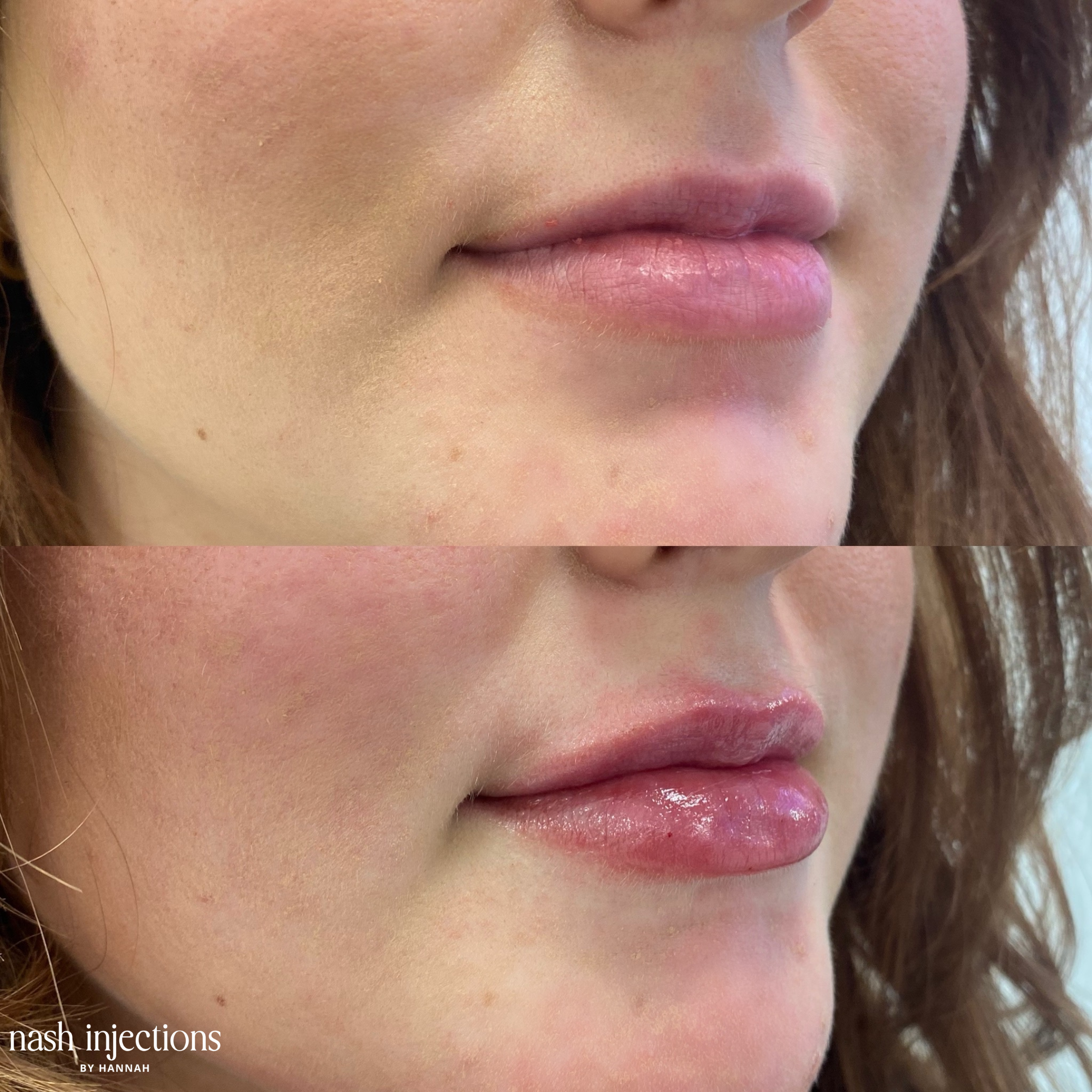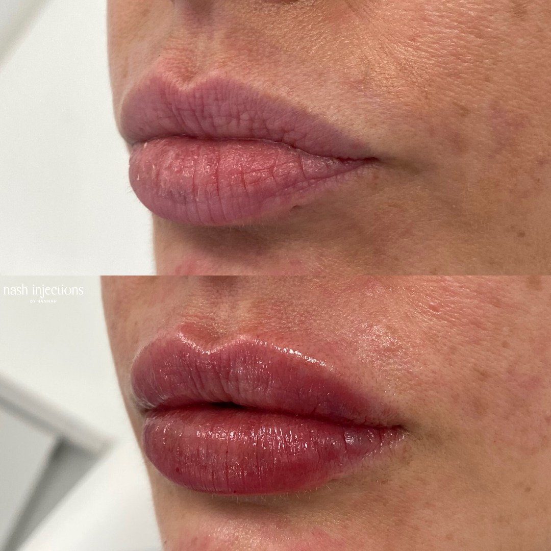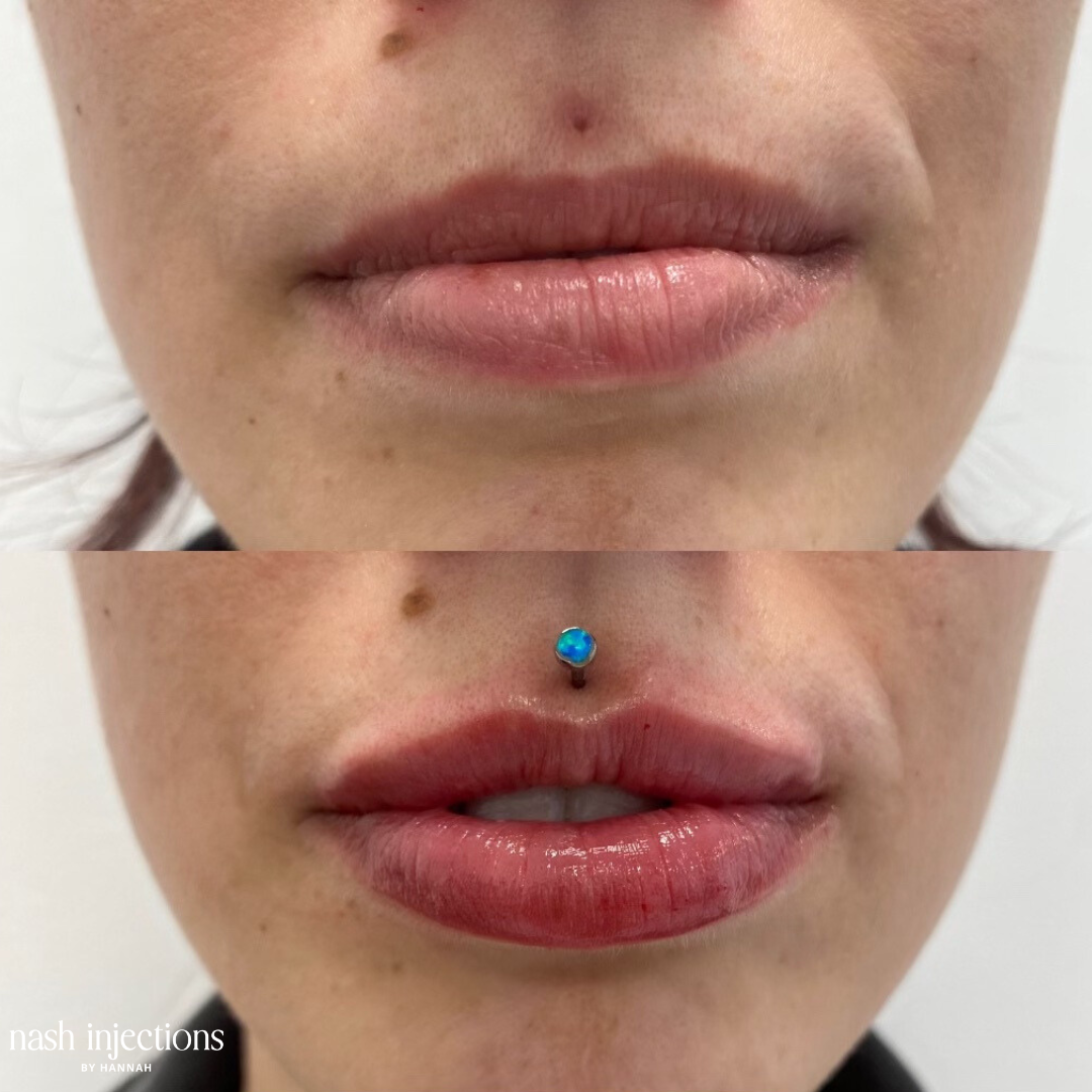 Here are some photos showing lip filler treatments before and after, done by Hannah at Nash Injections.