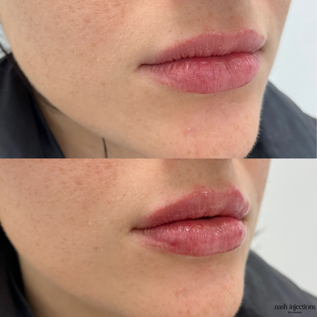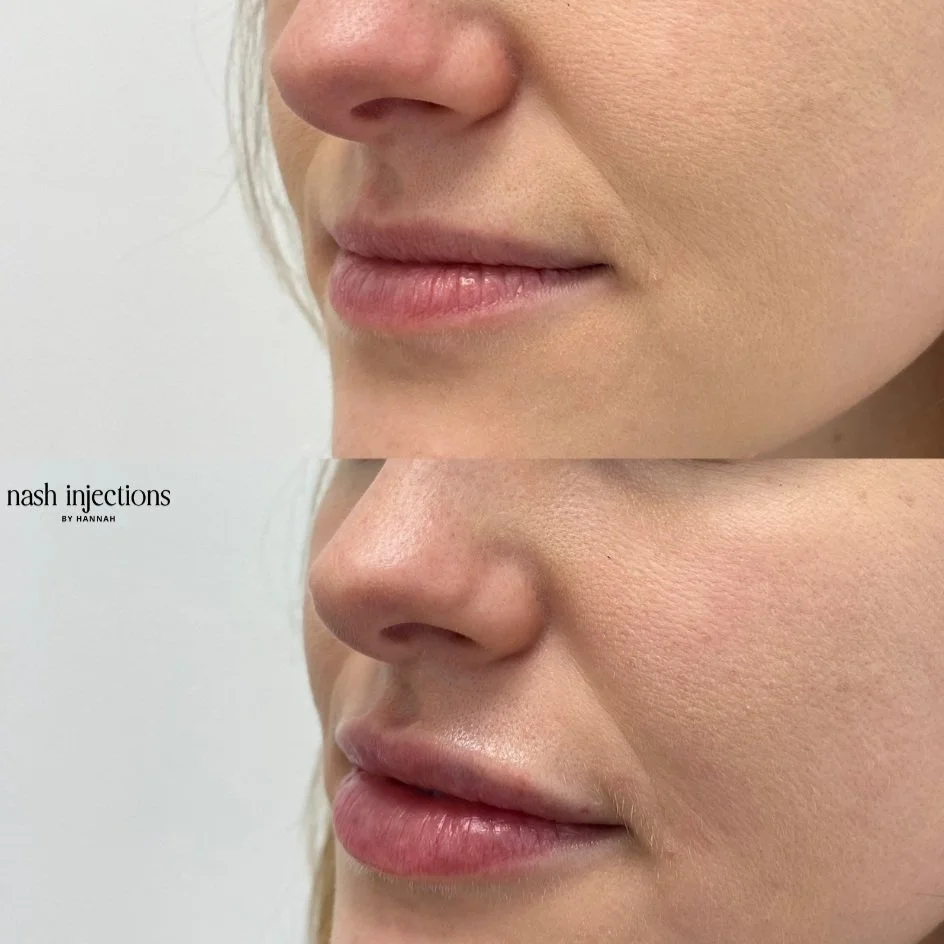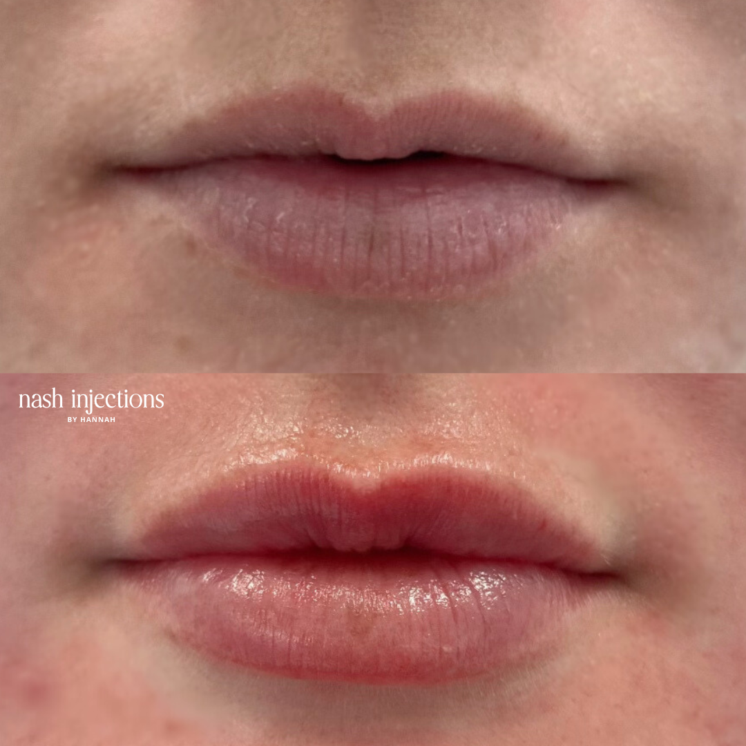 Here are some photos showing lip filler treatments before and after, done by Hannah at Nash Injections.