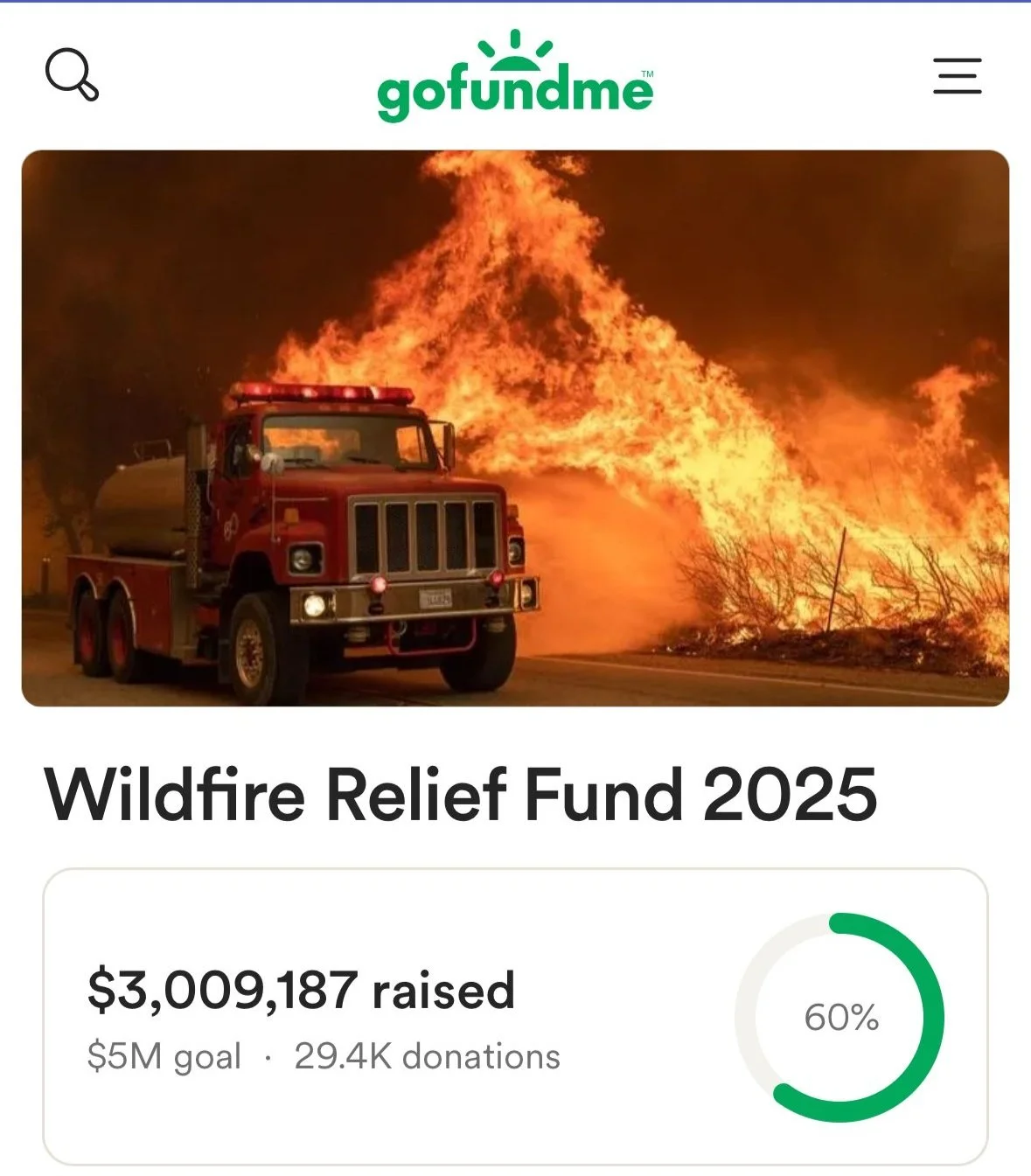 If you’d prefer to donate directly to those in need, GoFundMe has set up a dedicated page where you can contribute to the recovery efforts for Southern California fire victims, first responders, and others through individual fundraising campaigns.